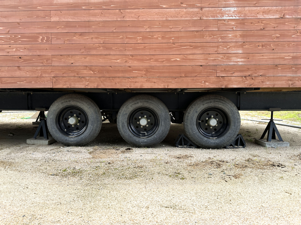 トレーラーハウスの下には シャーシ と呼ばれる鉄骨の土台があります。